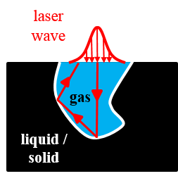 In many industrial processes for example drilling, cutting or welding, a laser heat source is used to reach very high densities of energy (~ MW/cm²) and local melting of materials. The laser-matter interaction and the amount of energy applied on the surface are linked to the media absorptivity, the incidence angle of the laser beam or the geometry of the cavity.