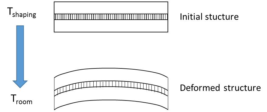 Computation of the stress and displacement induced by the temperature variation ΔT associated with the shaping process.