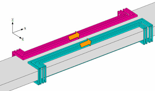Une fois le modèle validé, SIMTEC a proposé l’utilisation de différentes morphologies d’inducteur pouvant être mise en œuvre sur une ligne de production et fournissant un champ de température répondant au cahier des charges du client. L’influence du type d’inducteur sur la qualité du chauffage a été étudiée numériquement et a permis d’optimiser le rendement du procédé.