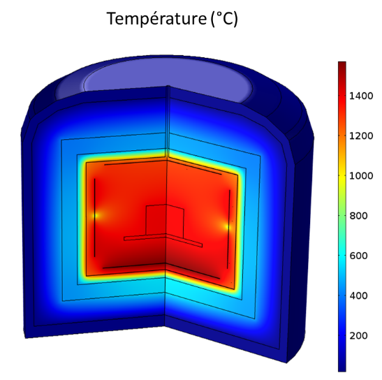 Les fours couramment utilisés dans l’industrie sont des fours résistifs, de conception relativement simple, dans lesquelles des résistances s’échauffent par le passage d’un courant électrique (effet Joule). Bien que de technologie très ancienne, ces fours peuvent nécessiter d’être adaptés au procédé thermique et à la charge employés. On va chercher par exemple à optimiser l’emplacement des résistances, dans le but d’avoir la plus faible consommation énergétique possible à température équivalente, ou prévoir la meilleure configuration de circulation du gaz pour les procédés nécessitant une atmosphère inerte. Dans cette optique, l’utilisation de la modélisation numérique s’avère utile.
