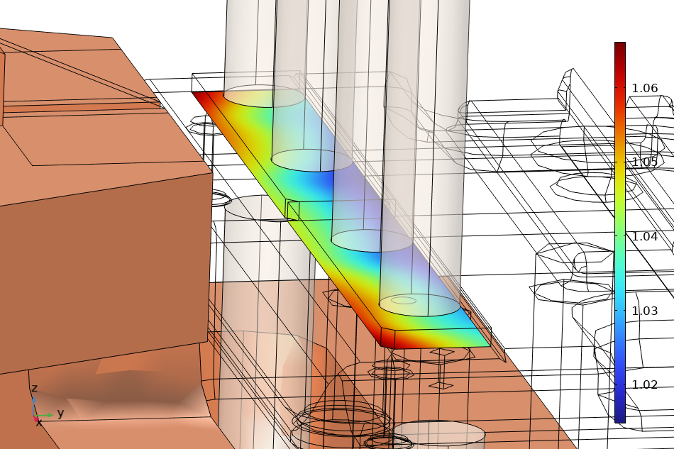 Ultimately, both results are combined by relocation in order to get an accurate prediction of the local temperature, conductive fluxes, displacement and mechanical stresses.