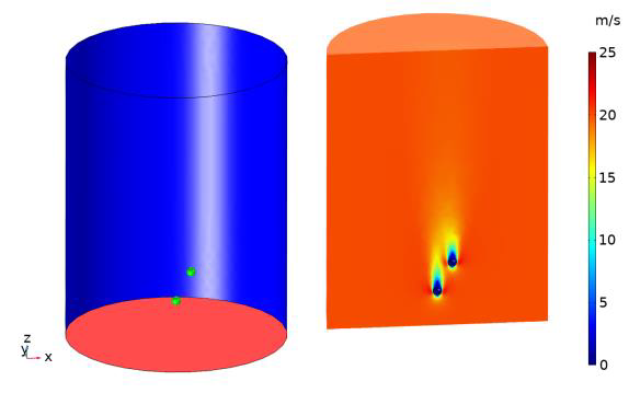 The depressurization process is the emptying of one tank to another one through a pipe network. In order to optimize the design of pipes and tanks, a good knowledge of the gas flow behavior is required. The modeling of compressible flows with a Mach number near 1 is quite challenging and simplifications are necessary to create an efficient numerical tool. Thus, a simple model is developed here, using COMSOL Multiphysics® and the “Non-Isothermal Pipe Flow” interface. A theoretical validation is made by confrontation with analytical results. Then, using experimental results in multiple configurations, the model is adjusted to make it predictive.