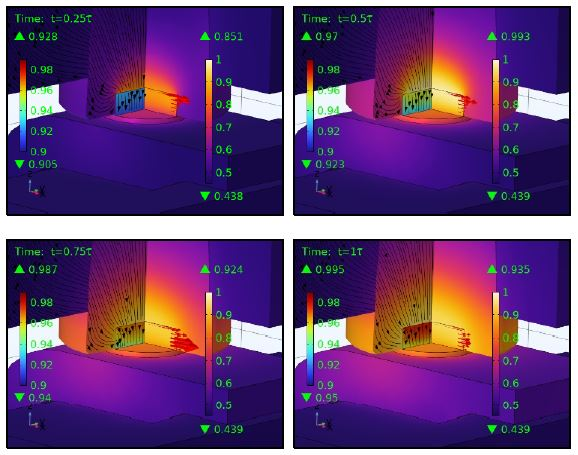 Continuous inkjet technology is widely used in the industry for marking and coding, and reposes on the emission of charged droplets at high velocity and high frequency. The shape of the droplets and the length needed for jet breakup are significant factors in the design of a printhead, influencing both the apparatus size and the printing quality. Understanding how the geometry of the droplet generator, the ink properties, and the operating point impact these indicators is then of prime importance. This article presents a modelling approach to the ink jet breakup process using COMSOL Multiphysics®.